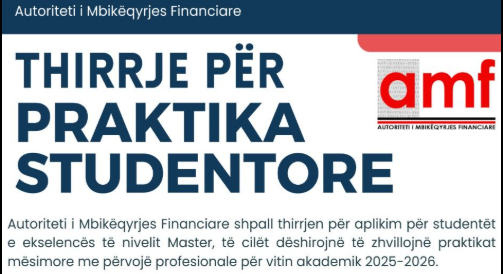 “Nëse je student ekselent dhe kërkon një përvojë reale profesionale, kjo është një mundësi e shkëlqyer për të njohur nga afër funksionimin e tregjeve financiare jo-bankare, për të punuar me ekspertë, për të fituar përvojë praktike në një institucion publik dhe për të hedhur hapa konkretë drejt zhvillimit të karrierës suaj”, shkruhej në shpalljen e AMF.