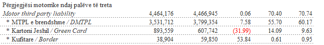 70.74% e dëmeve të paguara nga tregu i sigurimeve janë dëme të paguara si përgjegjësi motorike ndaj palëve të treta, ose thënë ndryshe nga siguracionet e detyrueshme motorike.