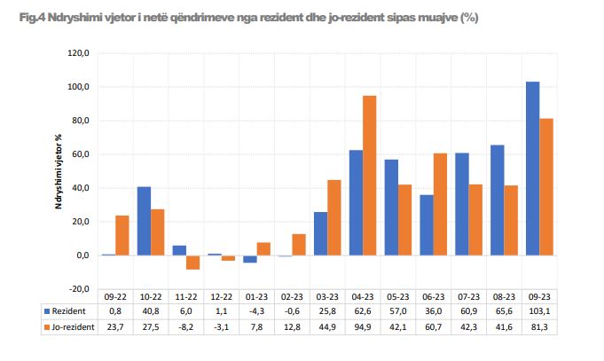 Numri i net-qëndrimeve gjithsej është rritur me 87,8 %, në krahasim me Shtator 2022. Të njëjtën ecuri ndjekin edhe dy treguesit e mëposhtëm: