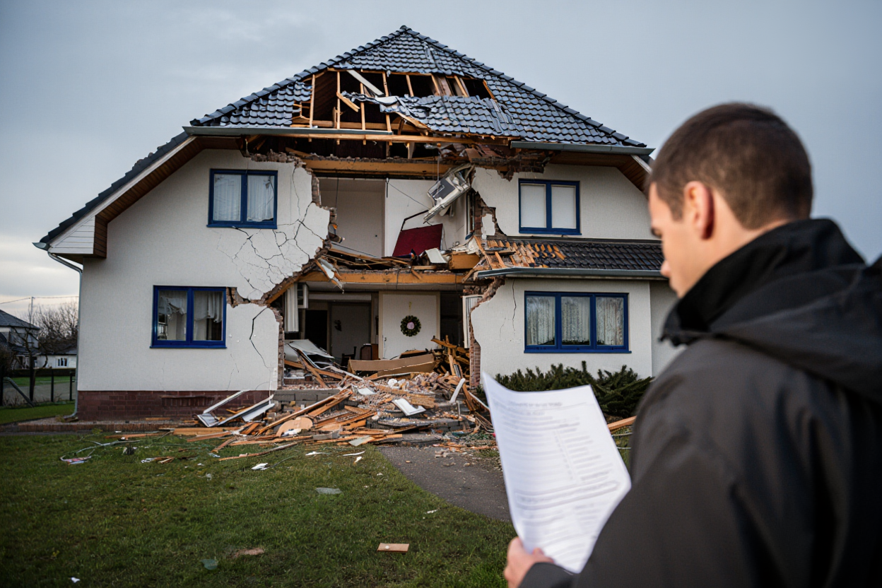 Një ditë, brenda afatit të mbulimit të paketës së tij standard, shtëpia e tij dëmtohet nga tërmeti.