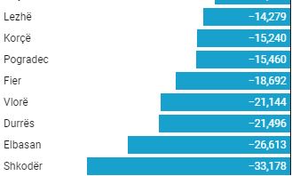 Popullsia sipas bashkive tregon se Shkodra ka pësuar rënien më të madhe në numër.