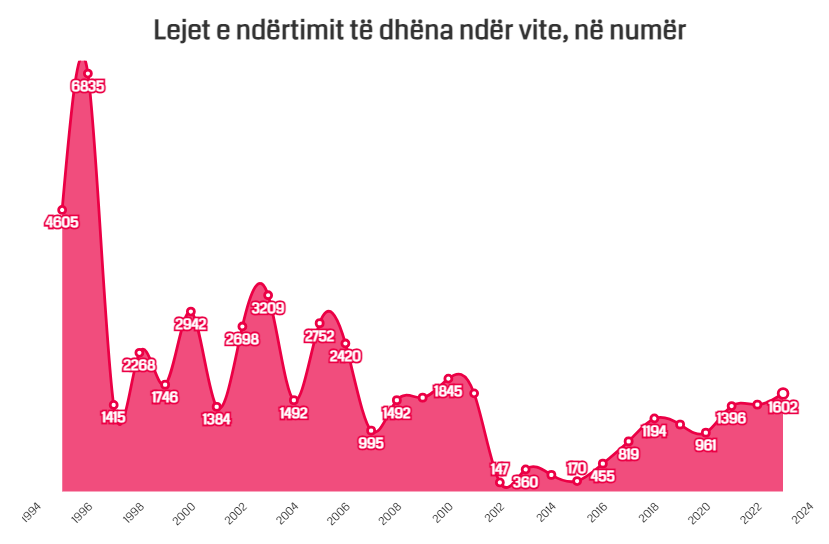 Sipas të dhënave të INSTAT, kjo shifër është më e larta që nga viti 2011-të, i cili regjistronte 1,604 leje ndërtimi.