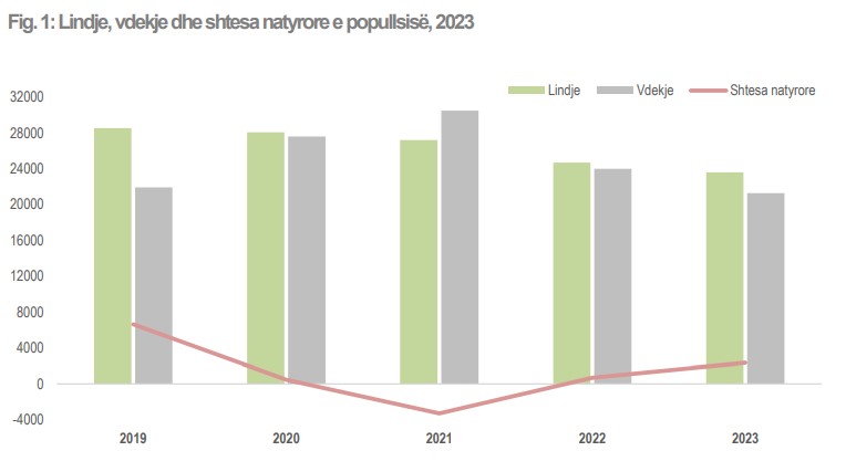 Në vitin 2023, shtesa natyrore e popullsisë rezulton pozitive me 2.331 lindje më shumë se sa vdekje, duke shënuar rritje krahasuar me vitin 2022, i cili regjistronte 690 lindje më shumë se sa vdekje. Gjatë vitit 2023 lindën 23.617 foshnja, duke shënuar një rënie me 4,3%, krahasuar me një vit më parë, ndërsa numri i vdekjeve ishte 21.286 persona, duke shënuar një rënie me 11,3%, krahasuar me një vit më parë.