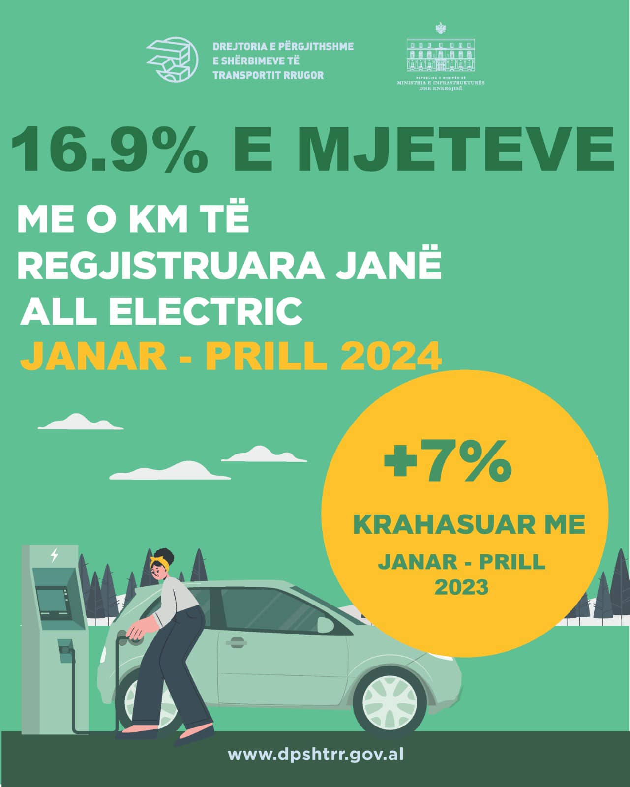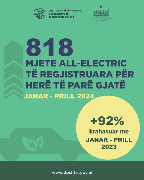 “Mjete Electric / Hybrid Plug-In ishin 1,529 të regjistruara. Kjo është 261% më shumë krahasuar me Janar-Prill 2022, 99% më shumë krahasuar me Janar-Prill 2023. 37% e autoveturave me të regjistruara për herë të parë janë Electric / Hybrid Plug-In.