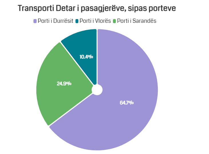 Po të njëjtët porte kanë shërbyer edhe për transportin e pasagjerëve. Numri i pasagjerëve që kanë udhëtuar gjithsej nëpërmjet porteve detare në vend është 197,377. Ndërkohë, 64.7% e personave kanë zgjedhur portin e Durrësit duke e renditur kështu si portin kryesor me 127,600 shtetas të hyrë dhe të dalë, më pas ndjek porti i Sarandës, i cili u përdor nga 24.9% e pasagjerëve dhe përmes portit të Vlorës erdhën dhe u larguan 10.4% e pasagjerëve.