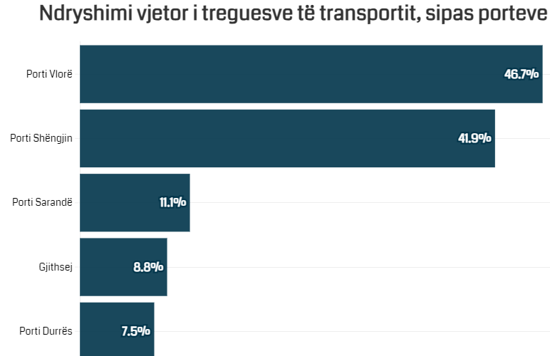 Konkretisht, volumi i mallrave të eksportuara me det gjatë tremujorin e katërt 2023 zë 41.8% të totalit të mallrave të eksportuara. Ndërkohë, volumi i mallrave të importuara me det zë 63.6% ndaj totalit të mallrave të importuara. Si mjet kryesor për transportin e mallrave është përdorur anija. Shifrat tregojnë se kanë hyrë dhe dalë gjithsej nga portet 207 anije nga të cilat 168 janë të huaja dhe 39 vendase. Numri i anijeve të hyra dhe të dala rezulton të jetë rritur me 81.6% , ndërkohë që një rritje të konsiderueshme kanë pësuar edhe anijet e huaja me 80.6%.