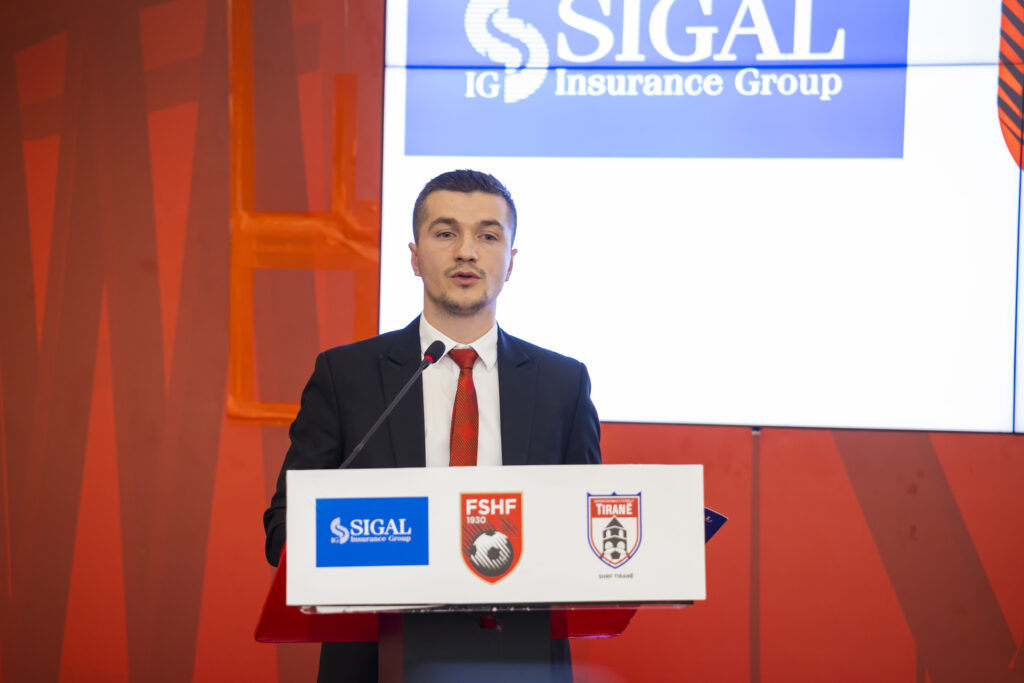 CEO i SIGAL Insurance Group, z. Avni Ponari, në fjalën e tij çmoi lart marrëveshjen dhe shprehu gatishmërinë për ta zgjeruar më tej bashkëpunimin e suksesshëm me Federatën Shqiptare të Futbollit, drejtimin e së cilës e konsideroi shumë novator dhe ambicioz për standardet më të mira në të gjitha drejtimet. Ai e vlerësoi këtë nismë si një hap me rëndësi të jashtëzakonshme, duke theksuar ndikimin e saj konkret në jetën e sportistëve të rinj dhe të familjeve të tyre. Në fjalën përshëndetëse, z. Ponari kujtoi se shpesh prindër dhe fëmijë i janë drejtuar kompanisë për ndihmë pas dëmtimeve, ndërsa tashmë, falë marrëveshjes së re me Federatën e Futbollit, kjo nevojë shmanget përmes një zgjidhjeje të strukturuar dhe dinjitoze. Sipas tij, sportistët e rinj nuk do të varen më nga ndihmat apo rastësitë, as nga mëshira institucionale, por do të ndihen të mbrojtur dhe krenarë për kontratat e tyre të sigurimit, të cilat u garantojnë mbështetje në rast dëmtimi, si në çdo vend tjetër ku sporti trajtohet me profesionalizëm. Ponari nënvizoi se një dëmtim serioz, si p.sh. një thyerje këmbë që mund të kushtojë deri në pesë mijë euro. Dëmtime si këto, jo të pazakonta në sporte me përballje, përbën një barrë të menjëhershme dhe të papritur për çdo prind. Pikërisht për këtë arsye, ai falënderoi Federatën dhe të gjithë bashkëpunëtorët që mundësuan këtë marrëveshje, duke e konsideruar atë si një model që duhet të zgjerohet edhe më tej në vitet në vijim, dhe për këtë shprehu edhe përkushtimin e plotë nga ana e kompanisë së tij.