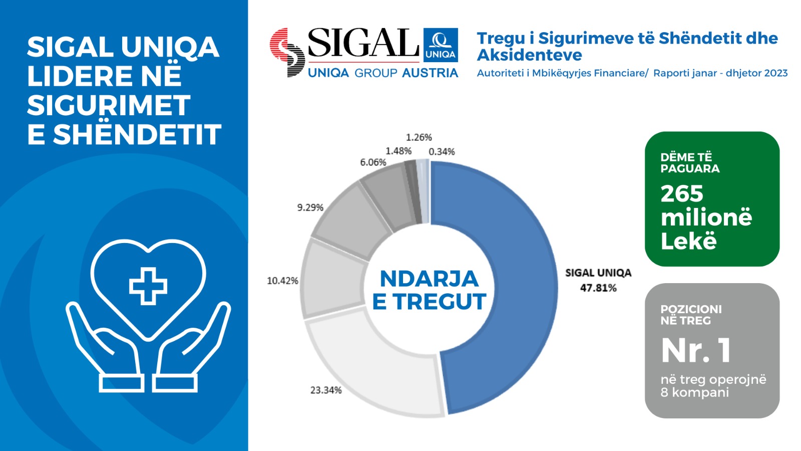Të dhënat e AMF flasin qartë: Në Sigurimet e Jetës dhe të Jo-Jetës, në ato të detyrueshme dhe vullnetare, SIGAL UNIQA Group Austria mbetet kompania më e madhe dhe më e besuar e sigurimeve në Shqipëri.