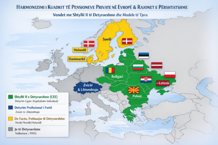 Të gjitha vendet fqinje me përjashtim të Shqipërisë dhe Serbisë, përdorin një tjetër model, atë të shtyllës së dytë të pensioneve.