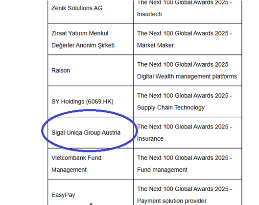 Sërish Global Awards 2025: Top 100 Companies to Watch përfshin SIGAL Ig si gjigant rajonal të sigurimeve.