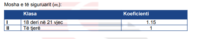 • Mosha e të siguruarit. Të siguruarit e grupmoshës 18 – 21 vjeç tarifohen më tepër se të siguruarit e grupmoshave të tjera.