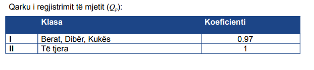 • Qarku i regjistrimit të mjetit. Mjetet e regjistruara në qarqet Berat, Dibër dhe Kukës tarifohen më pak se mjetet e regjistruara në qarqet e tjera.