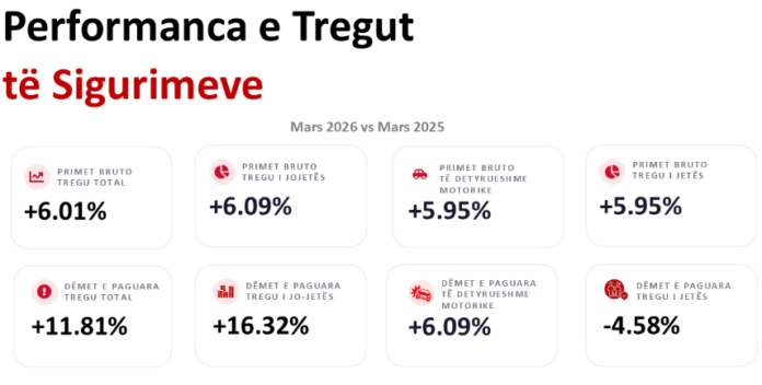 Gjatë periudhës janar – mars 2026, tregu i sigurimeve në Shqipëri ka shfaqur një ecuri pozitive në të gjithë treguesit kryesorë, duke reflektuar një zgjerim të volumit të aktivitetit.