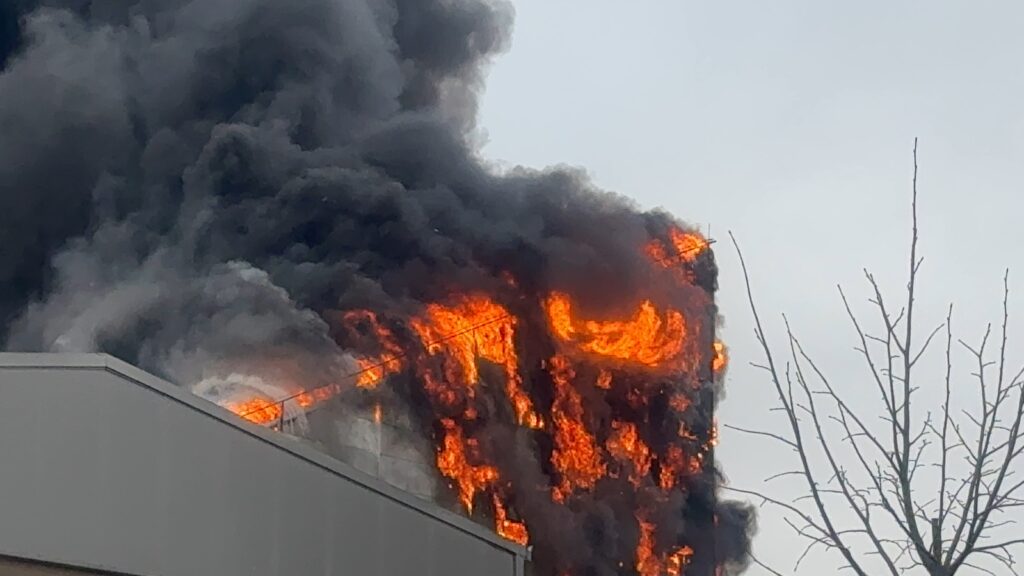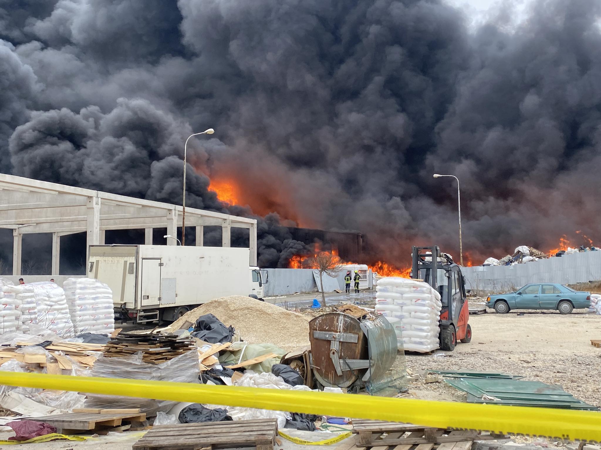 Sipas ekspertëve, për shkak të materialeve plastike në fabrikë, zjarri mund të shuhet vetëm përmes helikopterëve.